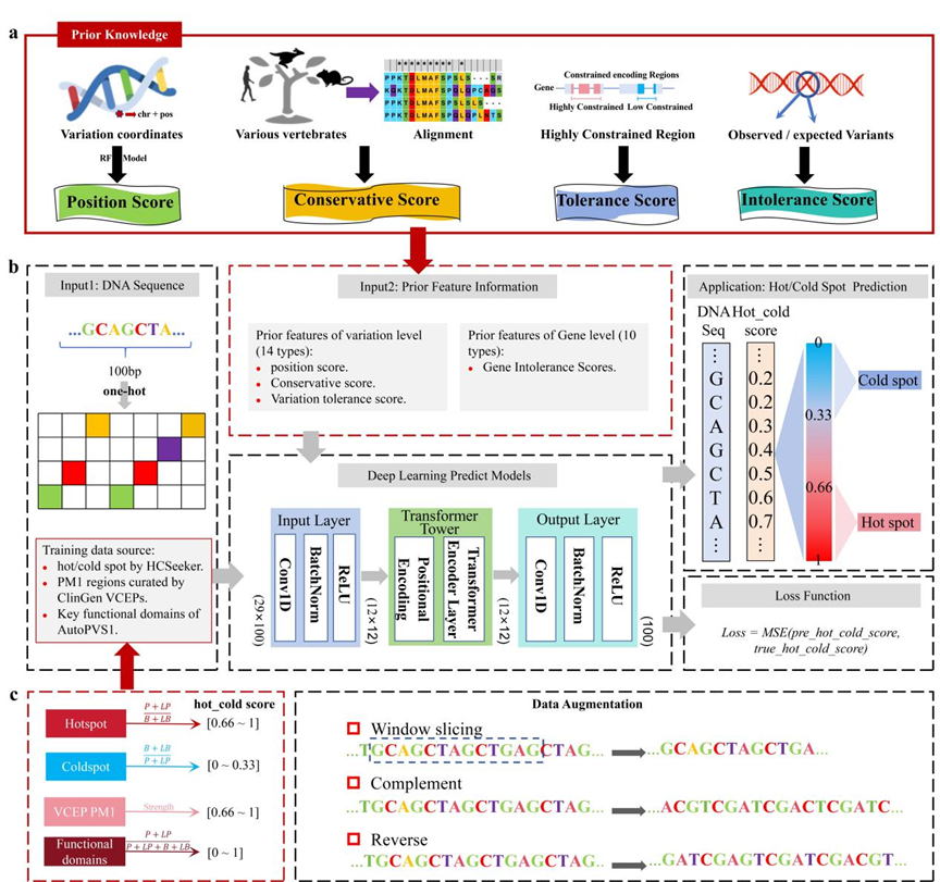 简介:精准识别人类外显子区变异的热点与冷点区域是应用ACMG-AMP指南中PM1标准及良性判读标准的关键环节,但现有工具如HCSeeker存在对ClinVar数据库依赖过强、在低频变异区域预测性能受限等问题。为此,本研究提出了HCSeer2,一种创新的深度学习框架。该框架通过整合CNN的局部特征提取能力与Self-Attention机制的全局依赖建模,实现了对人类全外显子组变异冷/热点区域的高精度预测。HCSeer2在现有冷热点数据上训练,采用多模态特征融合架构,整合序列信息与四种基因组先验知识,以自我监督的方式增强对变异聚集性机制的理解。借助该模型,研究团队在人类全外显子组中鉴定出28,907个变异热点和159,970个变异冷点区域,并验证了热点区域的位点致病可能性显著高于冷点区域。本研究不仅为ACMG-AMP指南的临床应用提供了可扩展的变异注释资源,其提出的多尺度建模方法也为基因组功能元件识别提供了新思路。